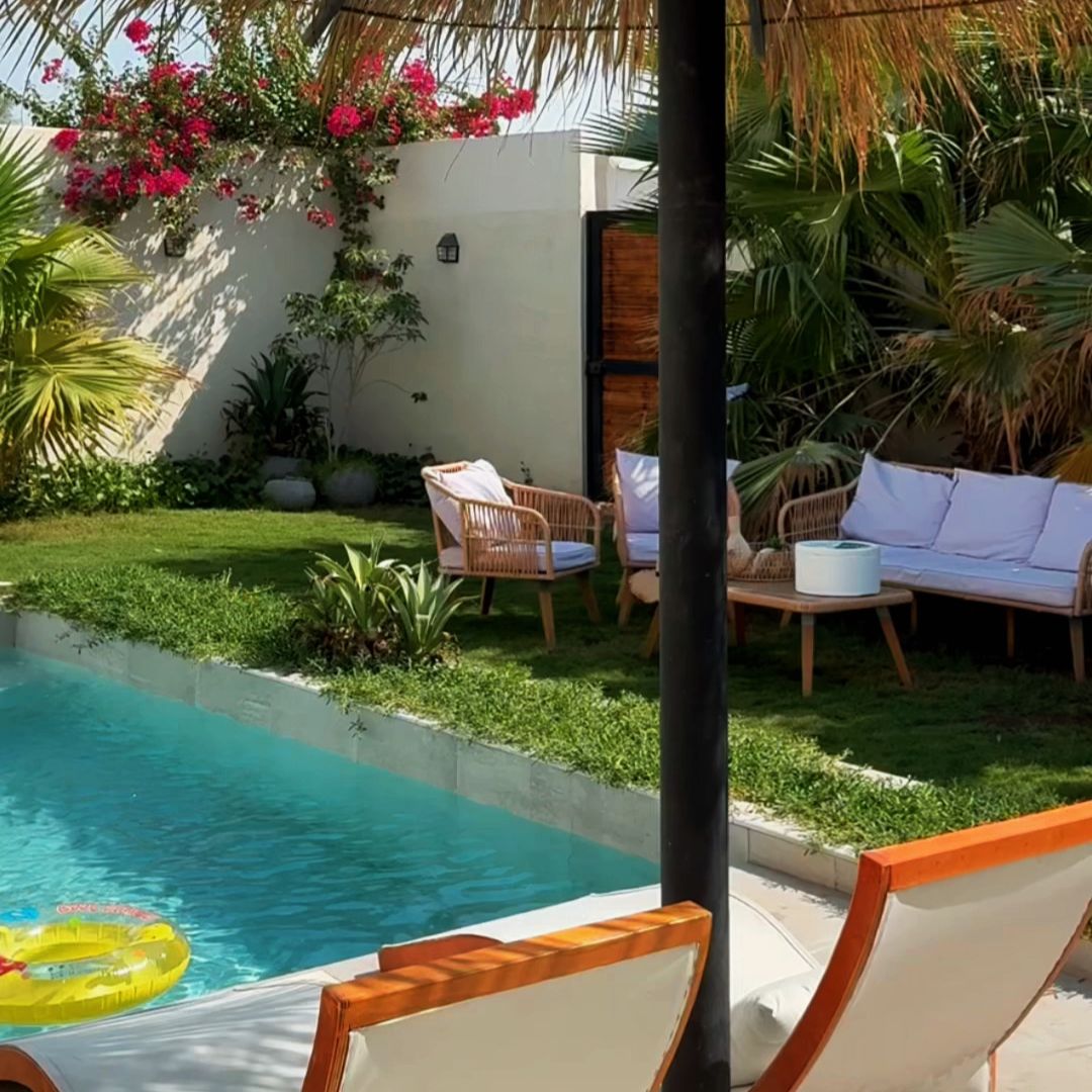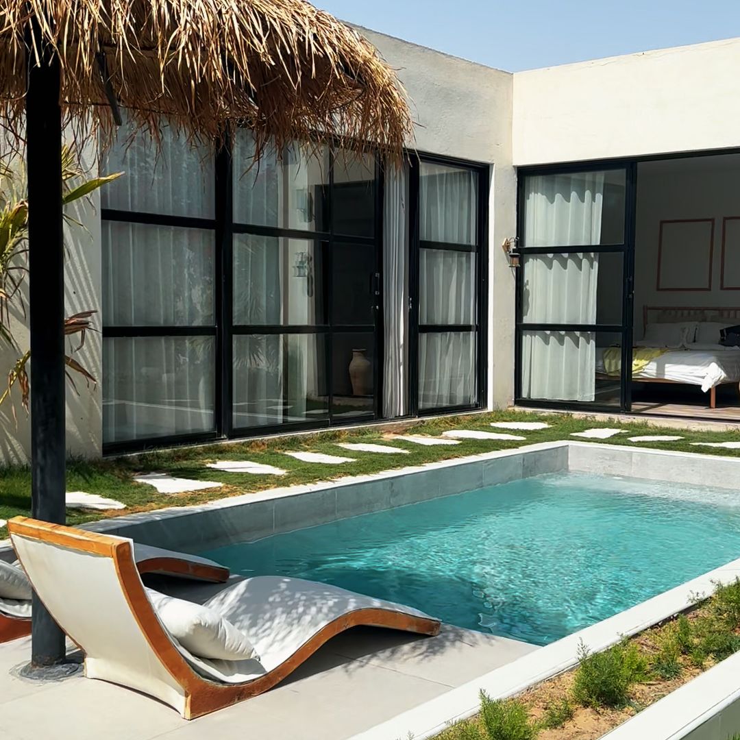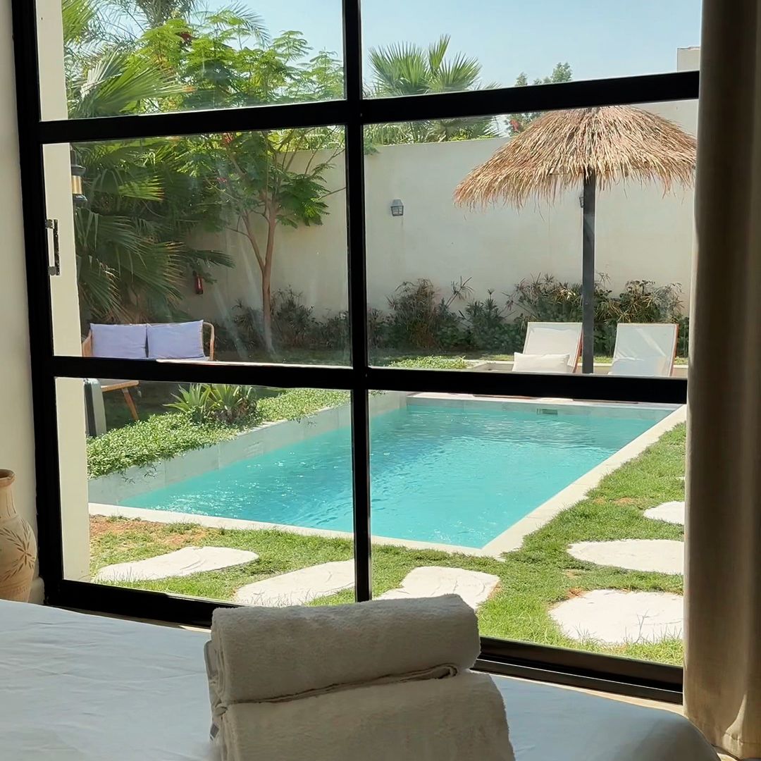 غرفة رئيسية مطلّة على المسبح والحديقة