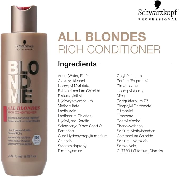 بلسم بلوندمي اول بلوندز ريتش من شوارتزكوف بروفيشنال مصمم للشعر الأشقر العادي إلى الخشن. مع مركب بروتين الكشمير، يغذي وينعم وينعم بعمق للحصول على شعر لامع يمكن التحكم فيه.