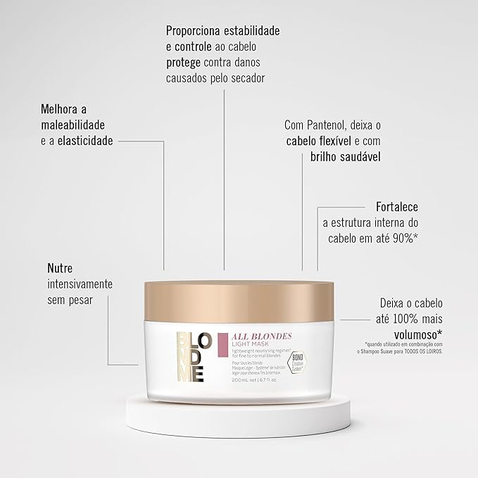 قناع “بلوند مي أول بلوندز” الخفيف، 200 مل، هو علاج مُصمم خصيصًا للشعر الأشقر، سواءً كان طبيعيًا أو مصبوغًا. يساعد هذا القناع الخفيف والمغذي على الحفاظ على درجات اللون الأشقر وتعزيزها، ويترك الشعر ناعمًا ولامعًا ومفعمًا بالحيوية. تركيبته اللطيفة والخفيفة لا تُثقل الشعر، بل تُوفر له الترطيب والتغذية دون إثقاله. مثالي للاستخدام المنتظم، هذا القناع يُضفي على الشعر مظهرًا صحيًا وأكثر إشراقًا.