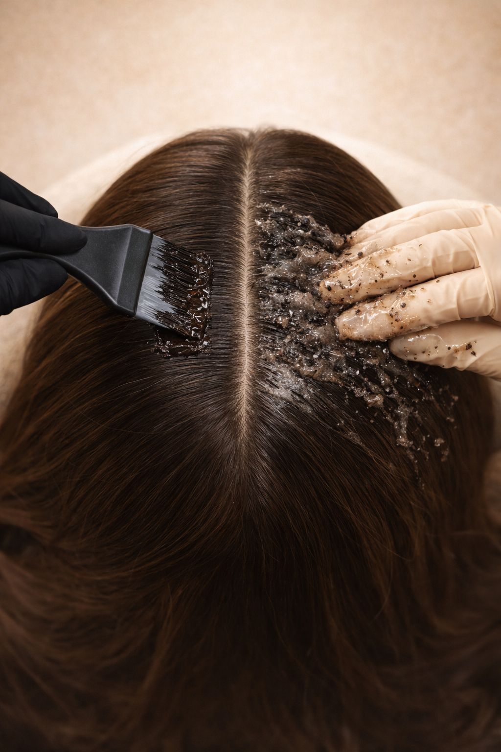 صبغة الجذور + تقشير فروة الرأس + ماسك شعر + واستشوار