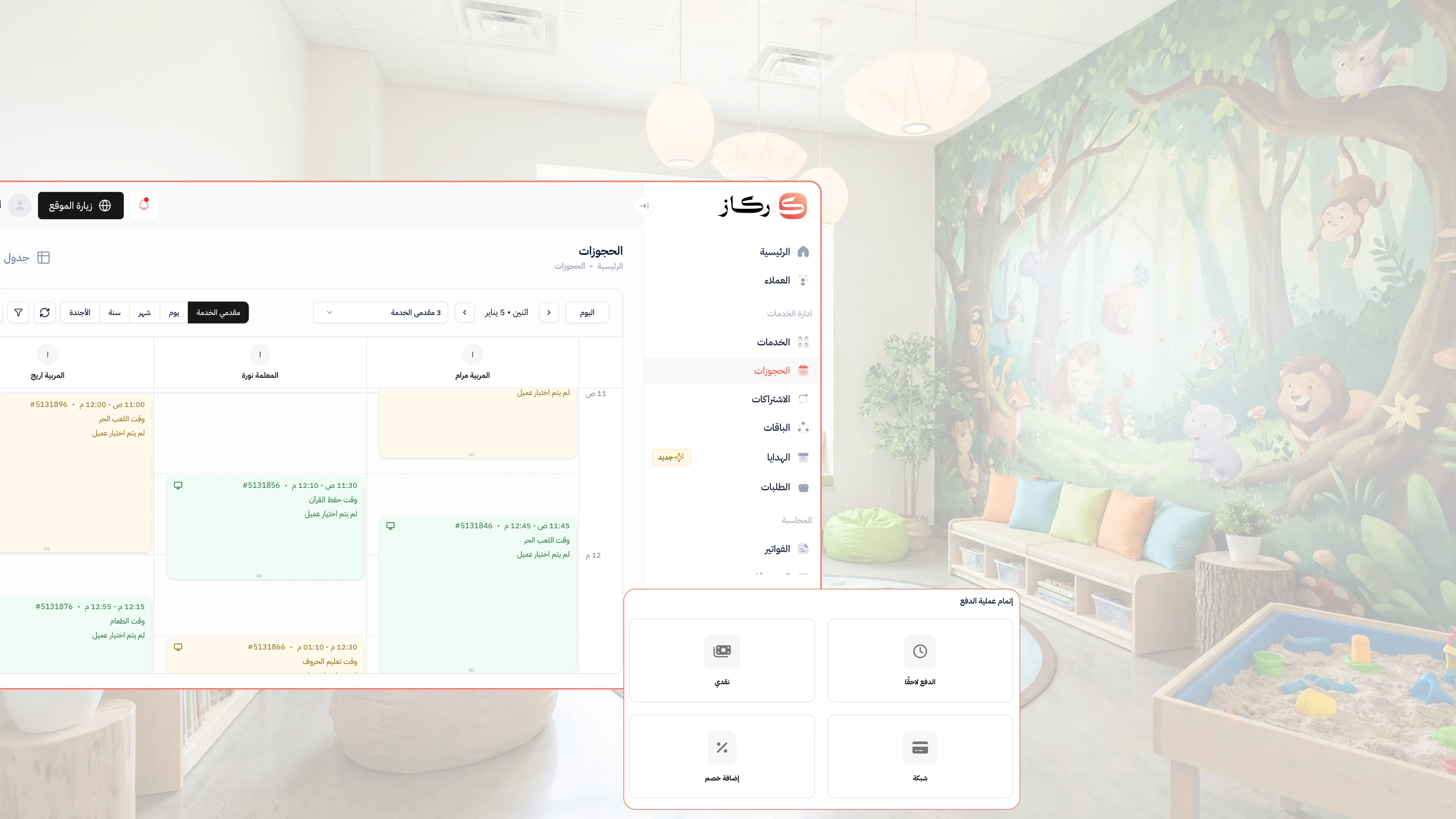ركاز يمنحك الأدوات التي تحتاجها لتبسيط عملياتك اليومية و تلائم احتياجات حضانتك الفريدة. كل ذلك مصمم ليوفر لك تجربة سلسة ومتكاملة