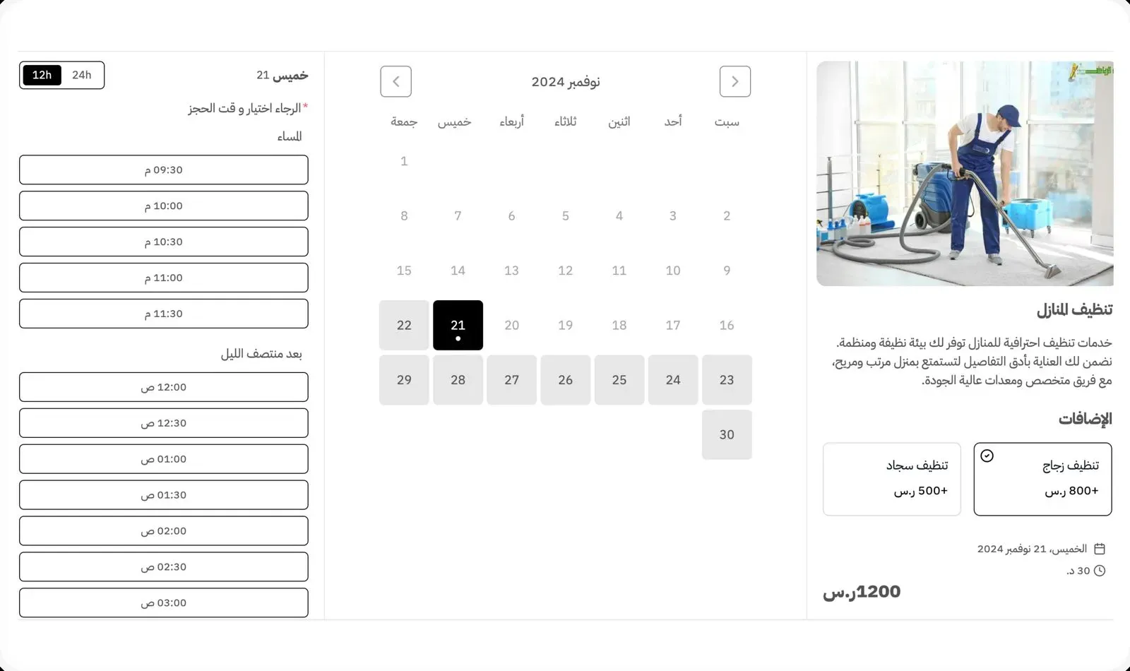 نظام شامل لتنظيم حجوزات خدمات التنظيف