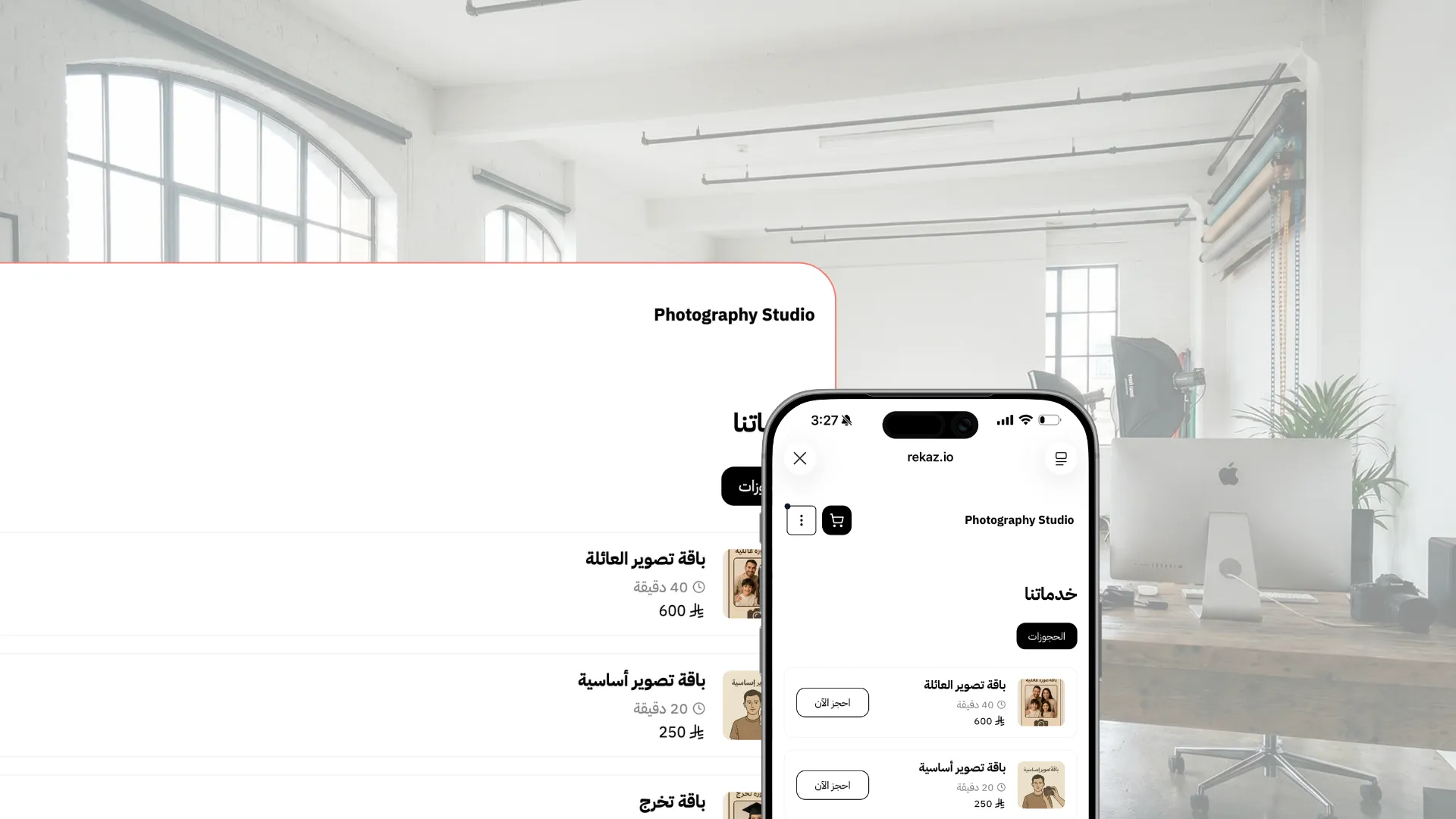 Rekaz minimizes lost sales by helping your clients complete their bookings every time. We provide a custom landing page for your studio, letting clients book sessions on their own, no back and forth messages needed.