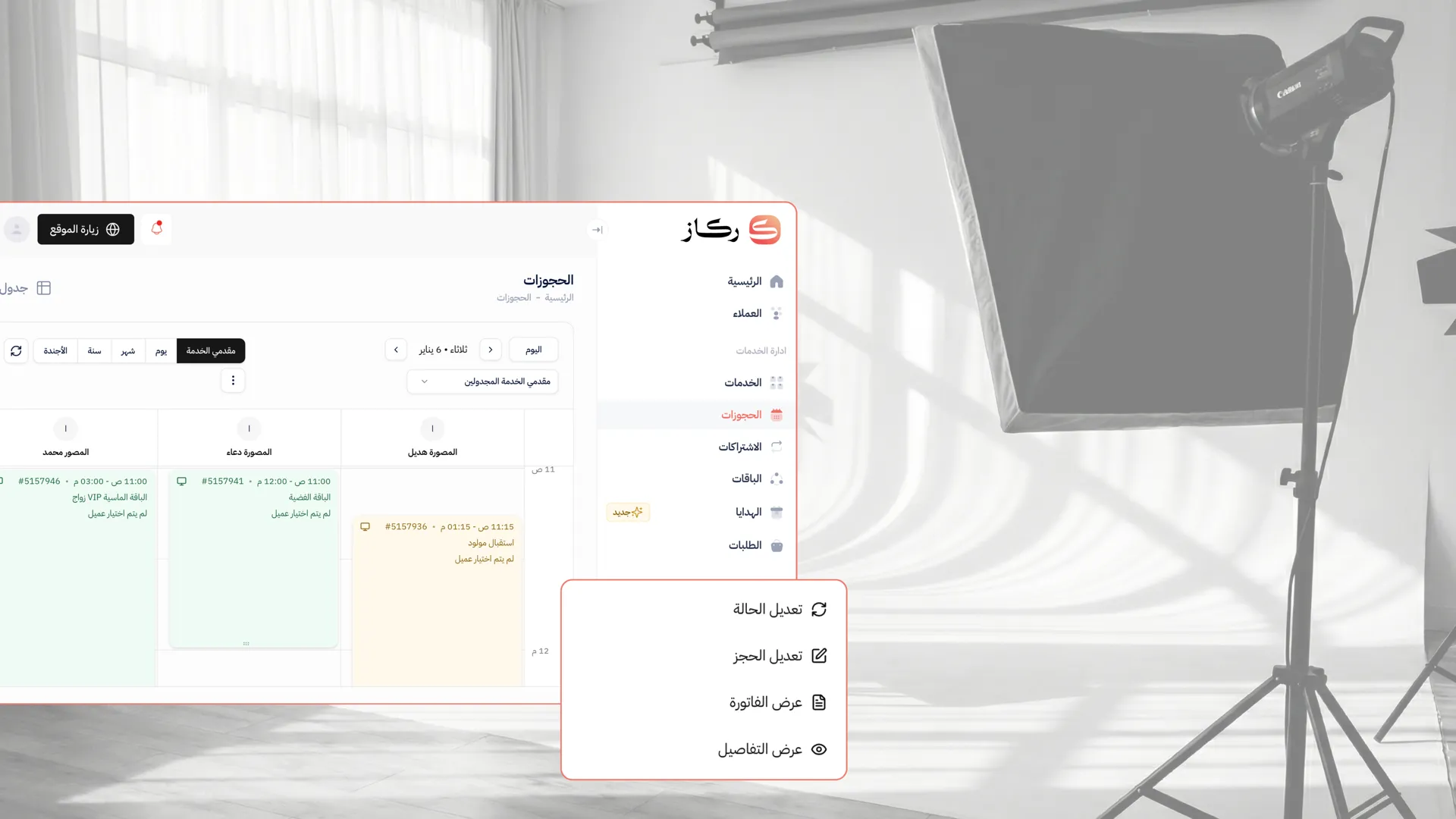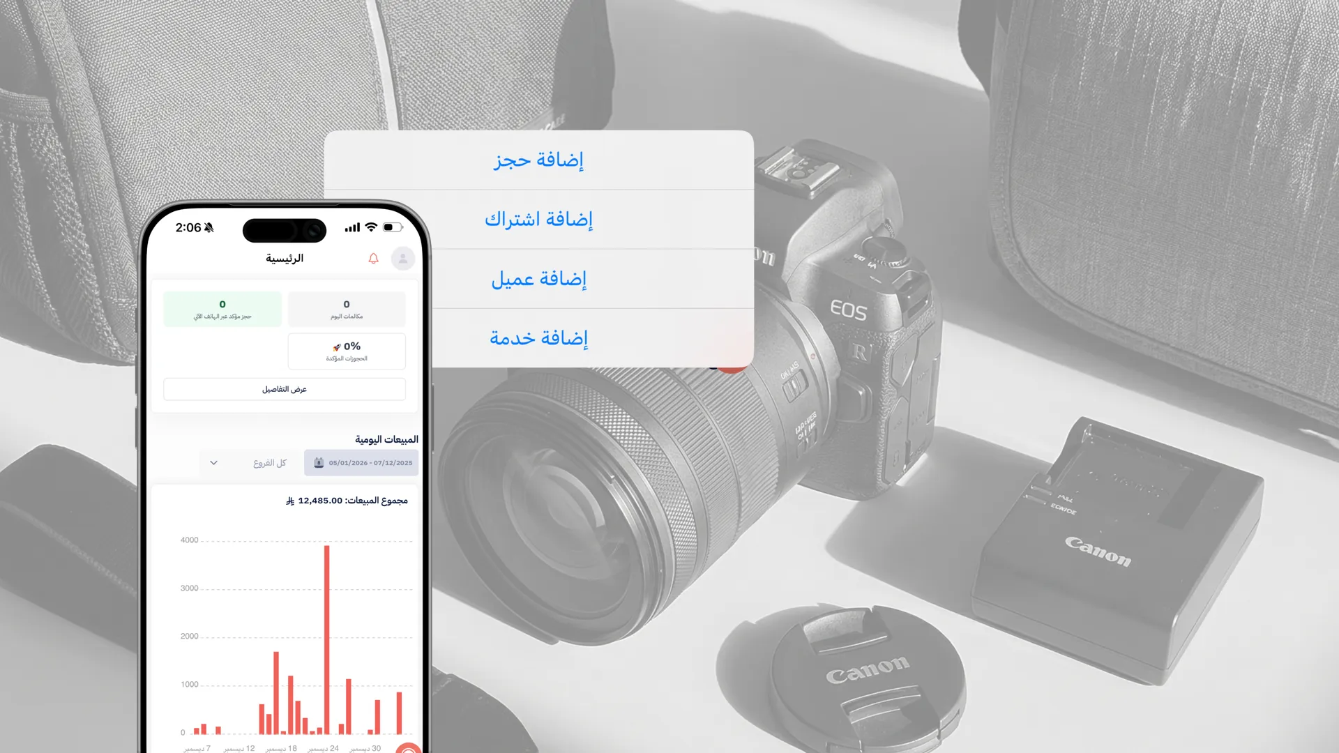 Complete system for managing clients, tracking bookings, issuing invoices, and monitoring reports, and more, all in one place that ensures professional management with ease and improves customer experience, so you can focus on growing your photography business