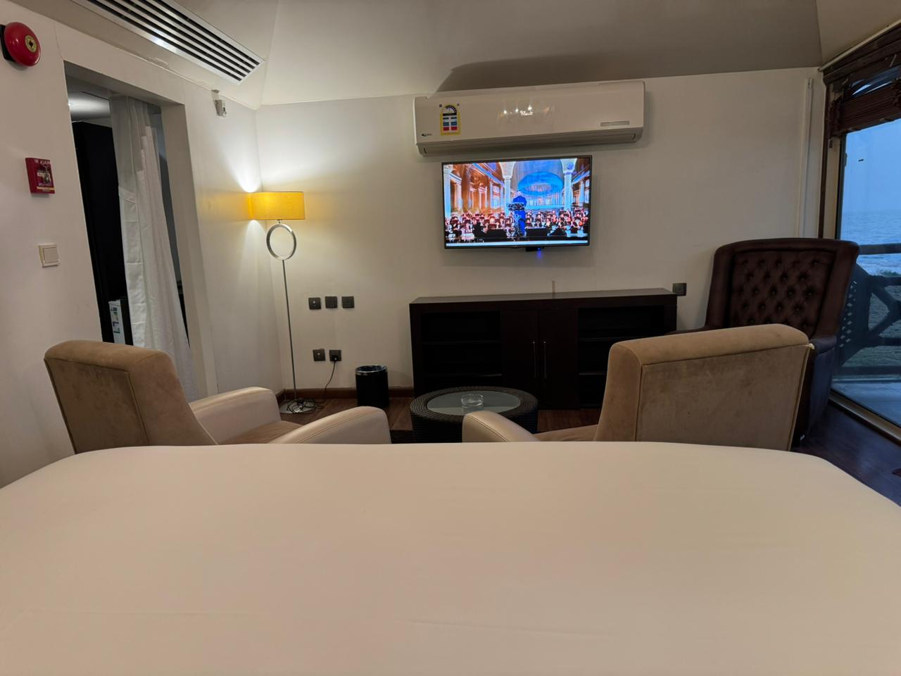يحتوى الكوخ على غرفة نوم بسرير مزدوج مع عدد 3 اريكة للجلوس وتلفاز بقنوات فضائيه ودورة مياة فندقيه مجهزة بجميع المستلزمات وخزانة ملابس وثلاجة وصانعة القهوة مطله مباشرة على البحر وبخصوصية تامه