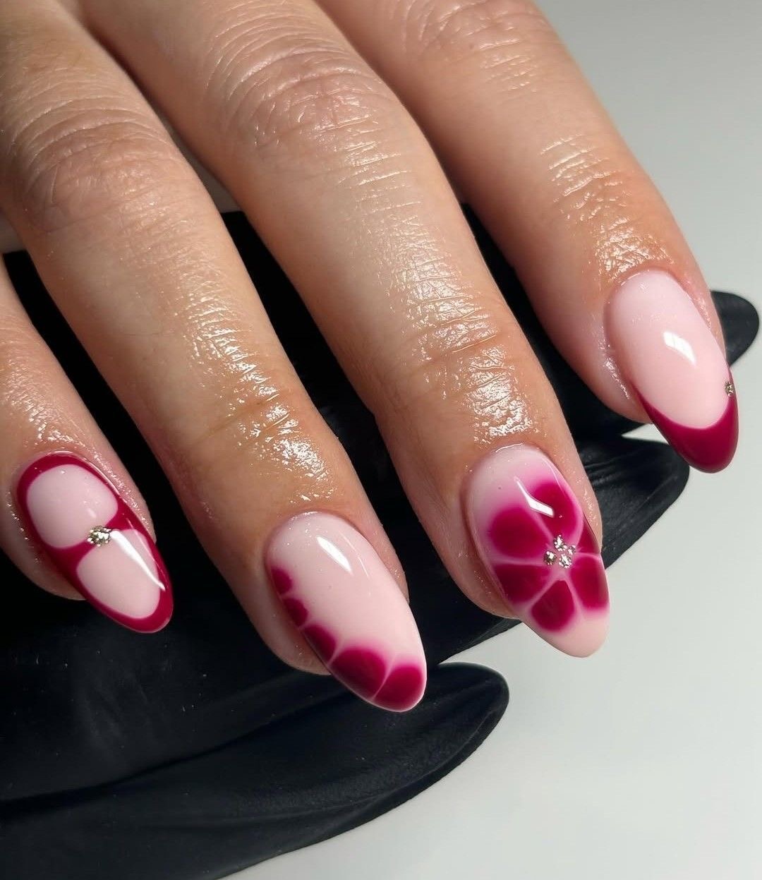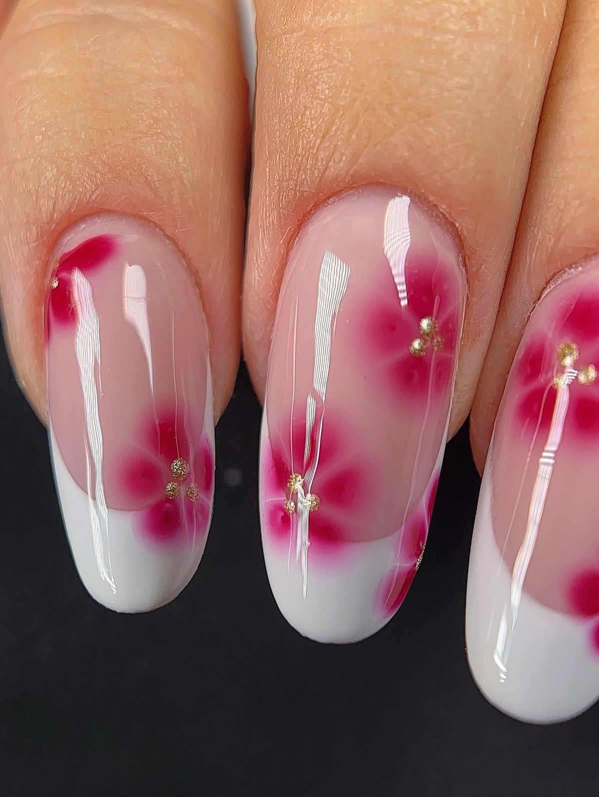 A nail art technique using special gel to create layered effects on the nails, resembling color blooming or soft ink diffusion.