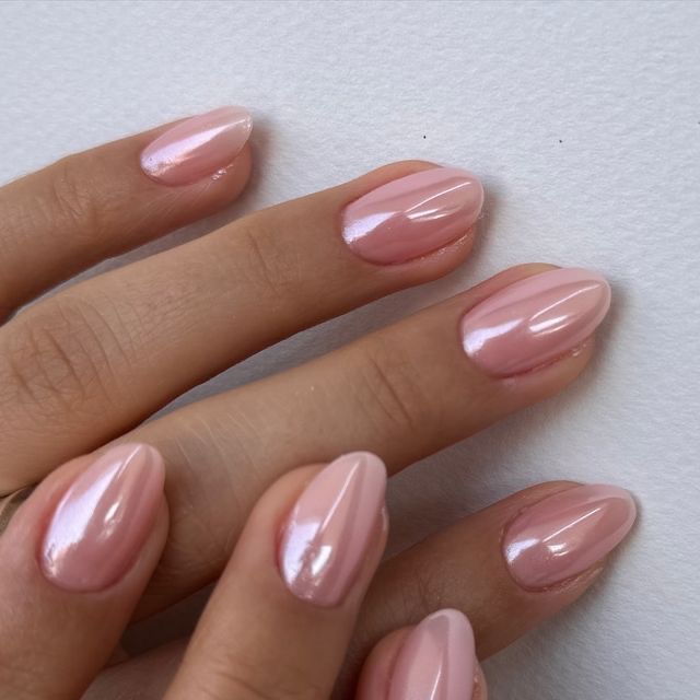 Add a shiny, metallic touch to your nails using chrome powder — giving them a sleek and reflective look.