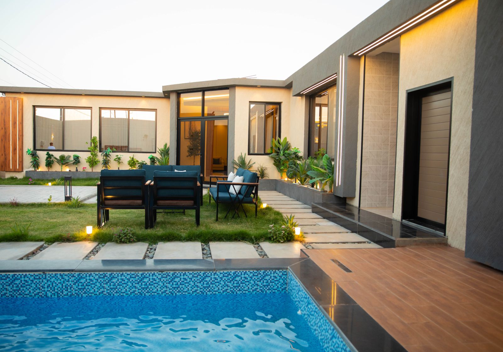 4- متاح مشب خارجي يتسع الي 15 شخص بدور مياه