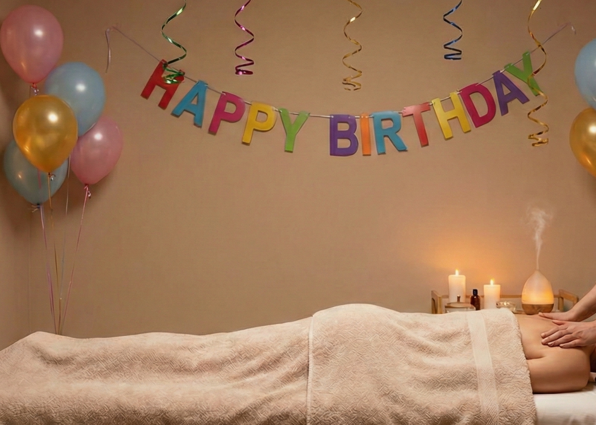 دلّلي من تحبين بجلسة مساج استرخائي تُعيد لجسمها التوازن، تليها جلسة بدكير ومنكير فاخرة تمنحهم لمسة من الجمال والنعومة مع كيكه صغيرة وبالونات