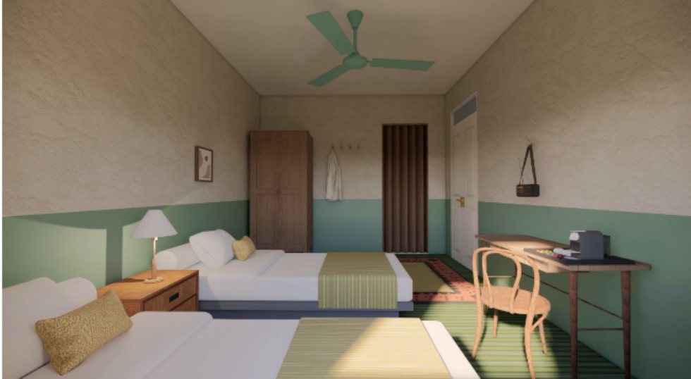 التوزيع عملي، بحيث كل غرفة لها خصوصيتها مع قربها من الحمامات المشتركة، وبعض الغرف مميزة بإطلالات ومساحات أكبر.