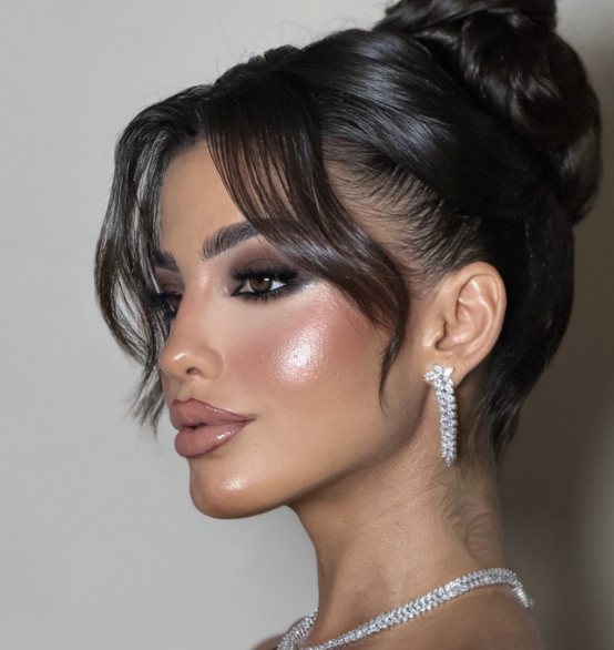 مكياج مميز برموش وعدسات وهايلايت رقبة