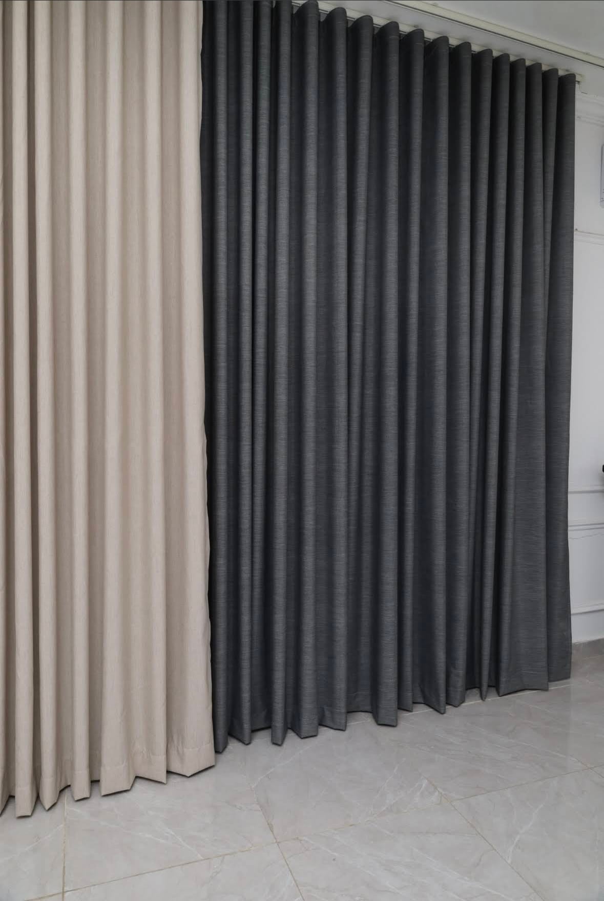 ٣-زاوية ستائر كخلفيات(رمادي-بيج)